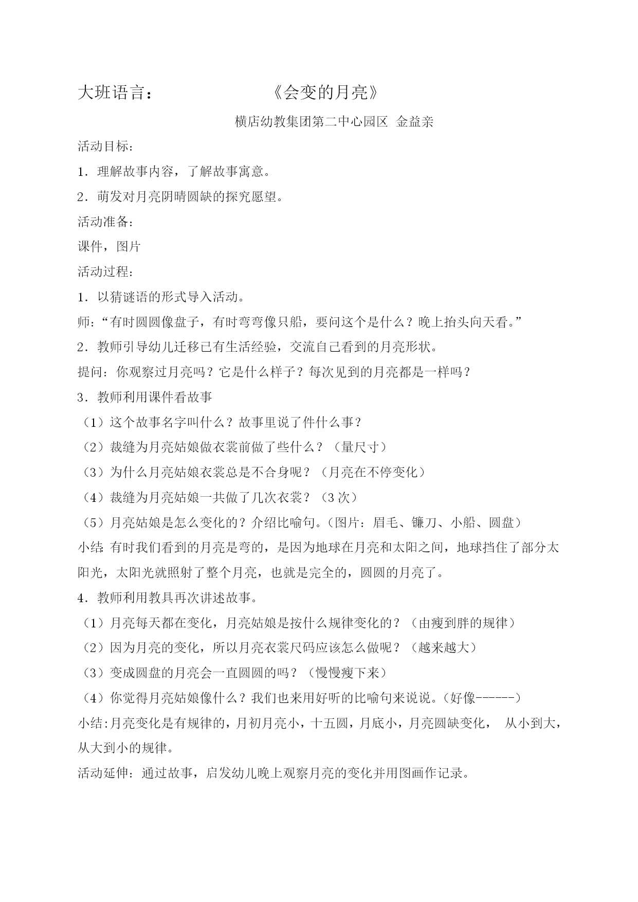 金益亲《会变的月亮》教案说课稿