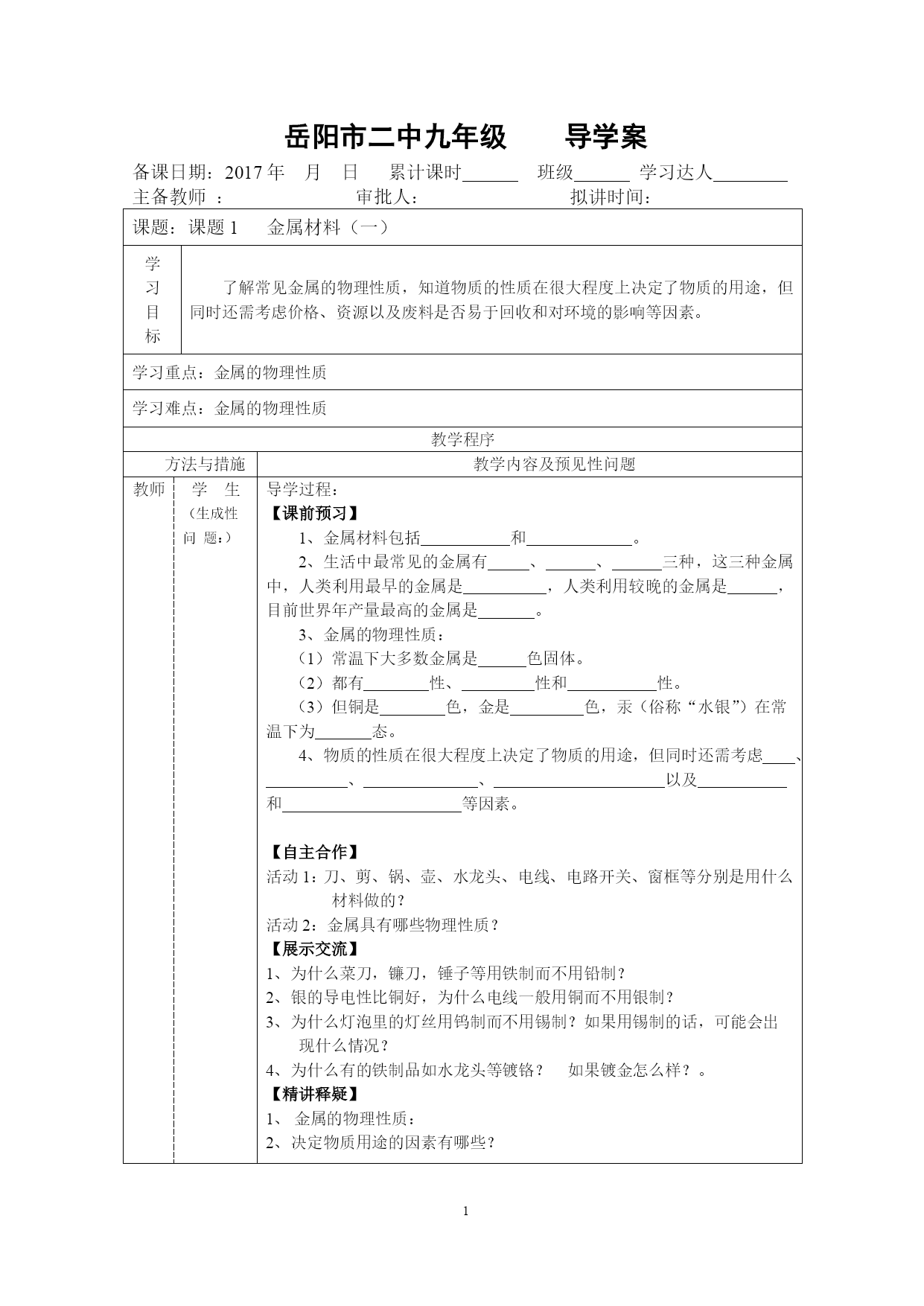 金属材料学案
