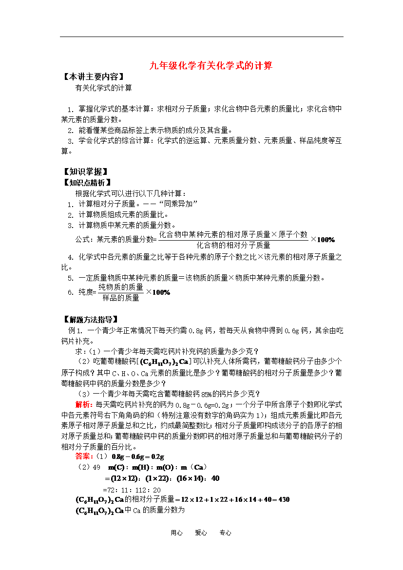 试题-全国-2009_九年级化学有关化学式的计算知识精讲
