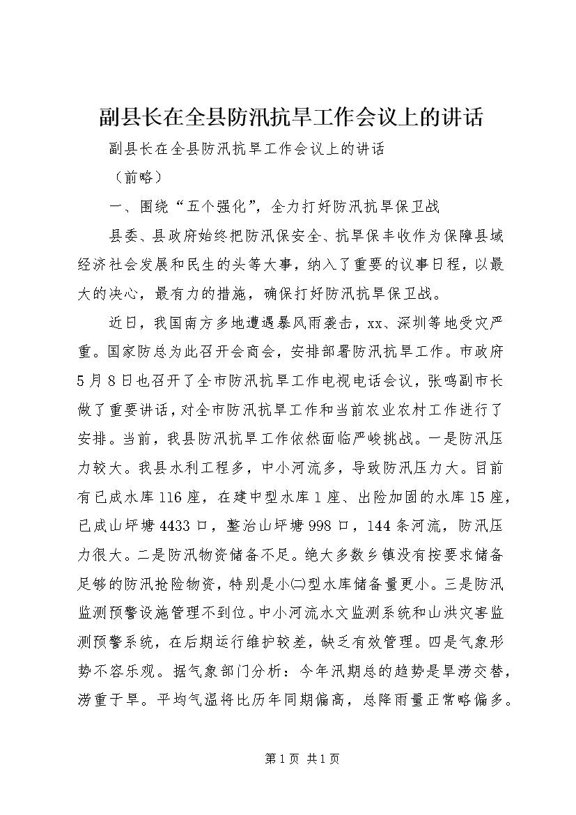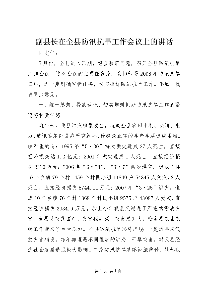 副县长在全县防汛抗旱工作会议上的讲话 (3)