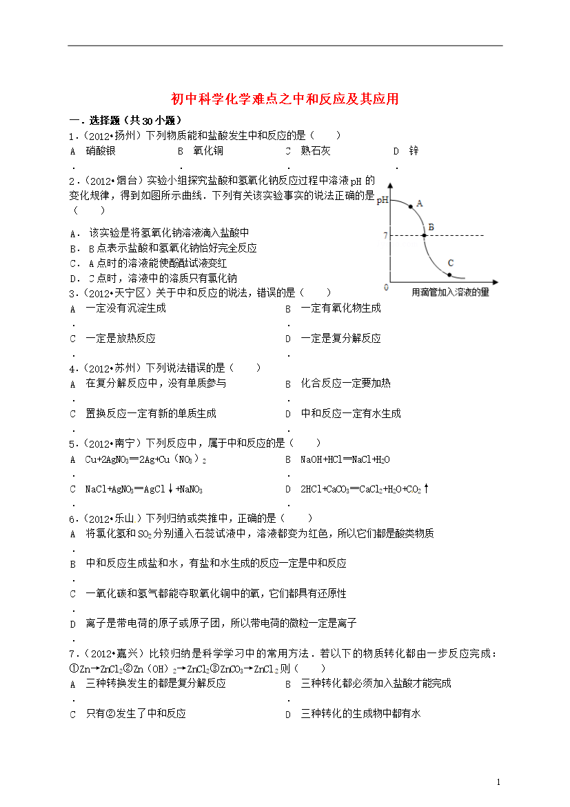 试题-全国-2013_冲刺中考2013中考化学难点突破专题11 反应及其应用