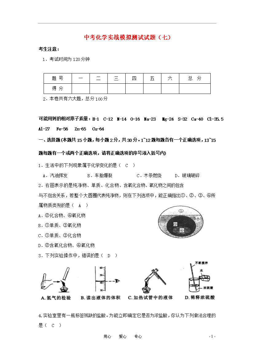 试题-全国-2011_中考化学实战模拟测试试题(七)