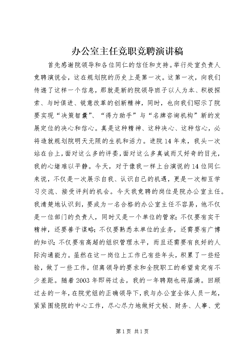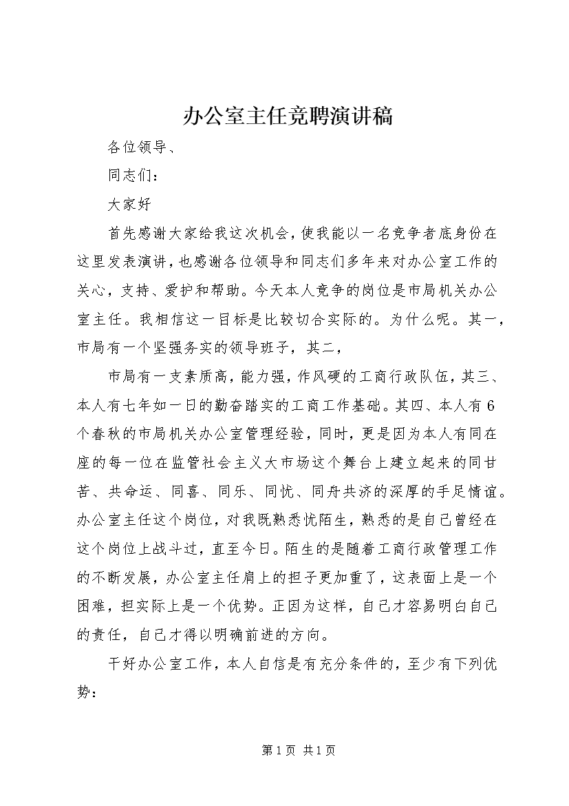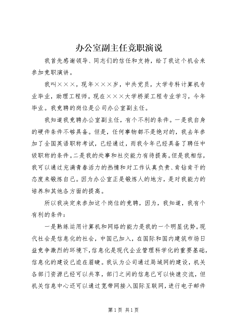 办公室副主任竞职演说 (2)
