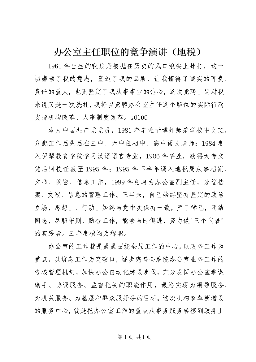 办公室主任职位的竞争演讲(地税)