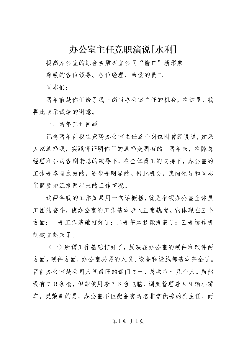 办公室主任竞职演说[水利] (2)