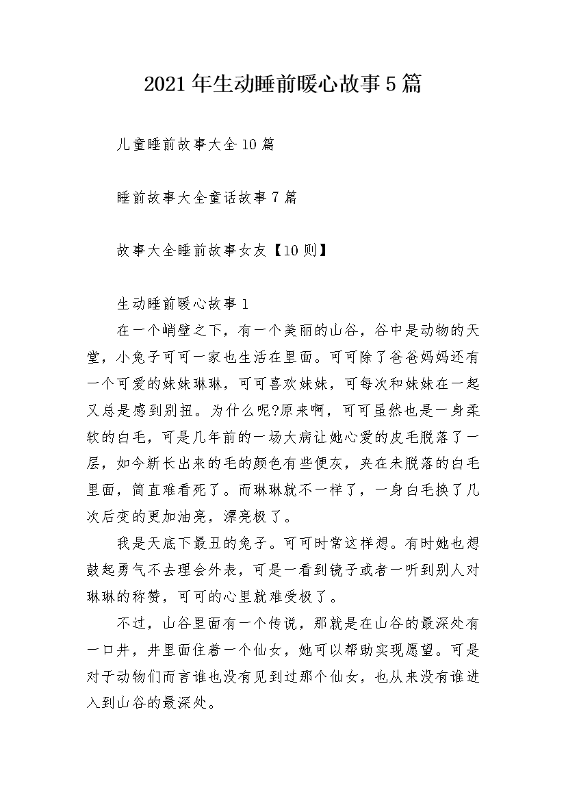 2021年生动睡前暖心故事5篇