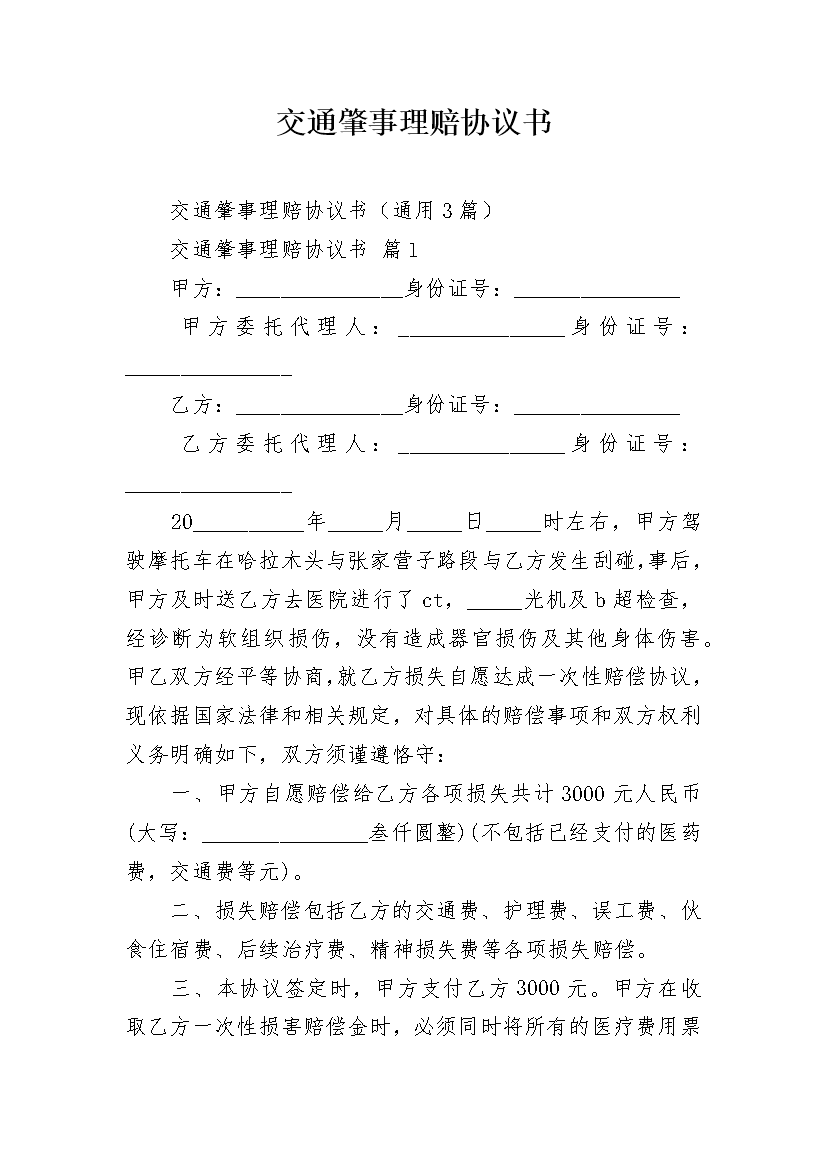 交通肇事理赔协议书