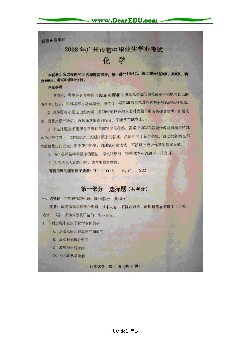 试题-广东-2008_2008年广东广州市初中毕业生学业考试化学试卷