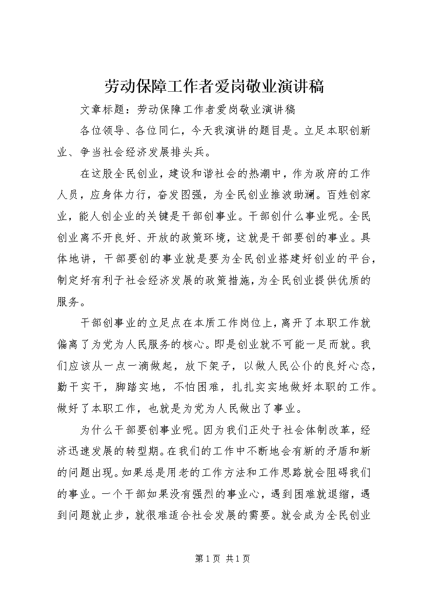 劳动保障工作者爱岗敬业演讲稿 (3)