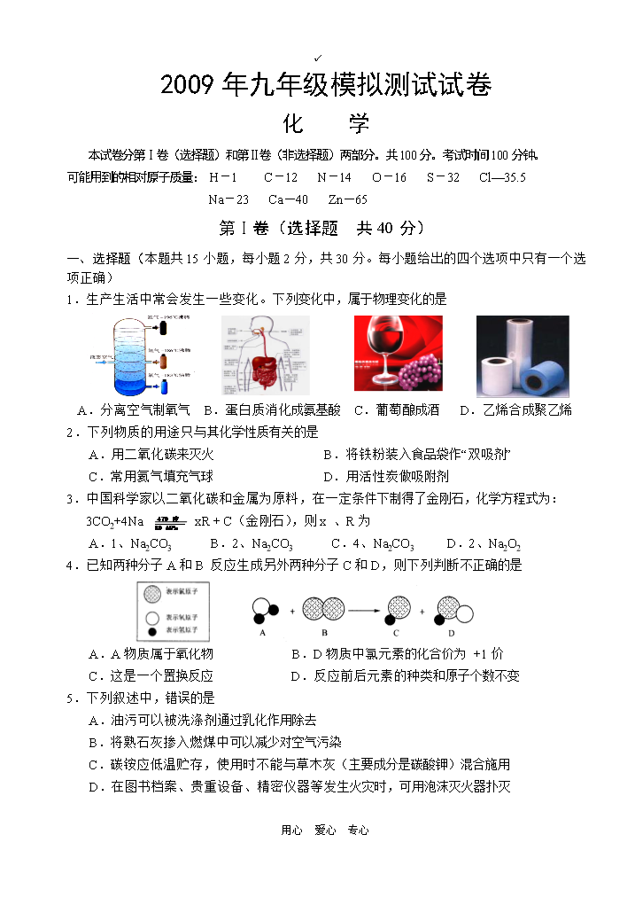 试题-江苏-2009_2009年江苏省如东实验中学中考化学模拟试题
