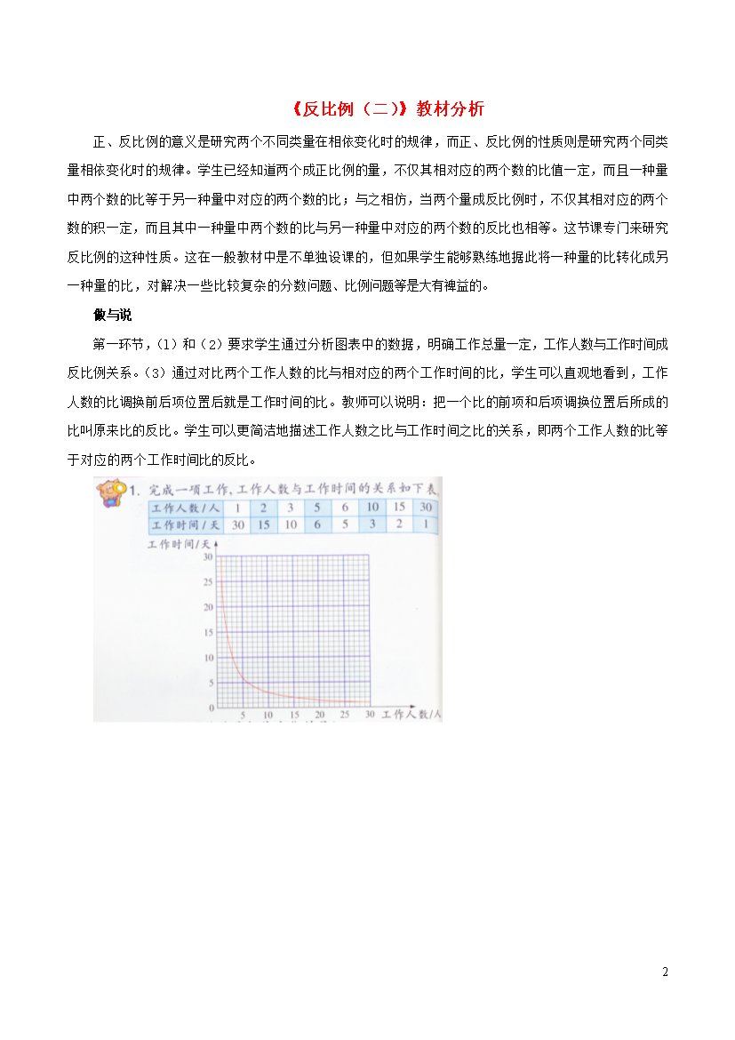 素材-全国-2019_六年级数学下册 一 比例 7《反比例(二)》教材分析 浙教版