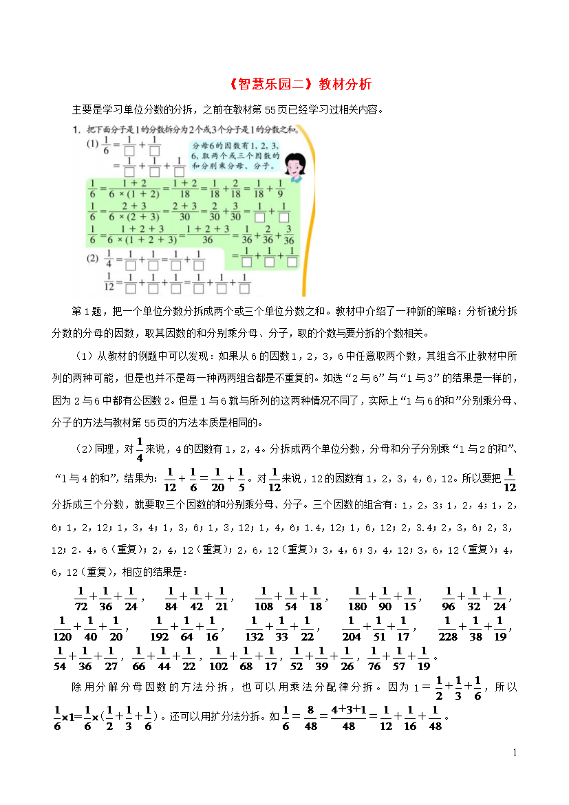 素材-全国-2019_五年级数学下册 二 分数四则运算《智慧乐园二》教材分析 浙教版