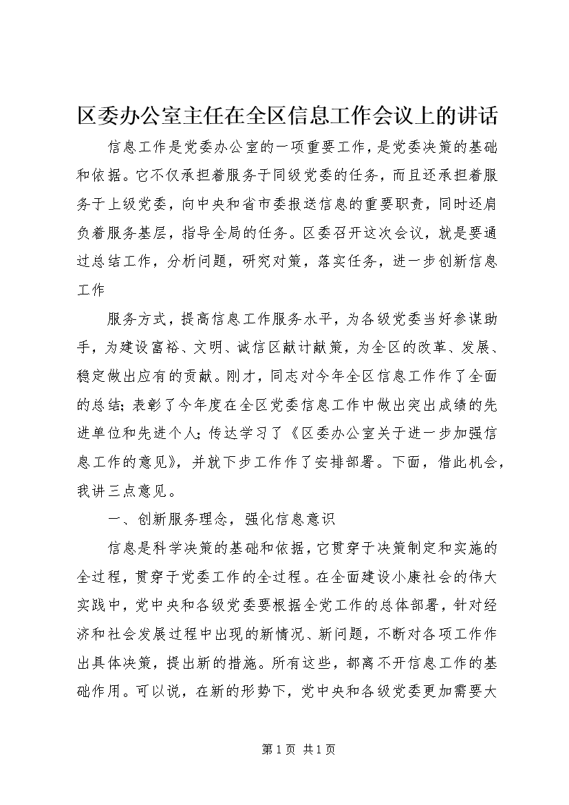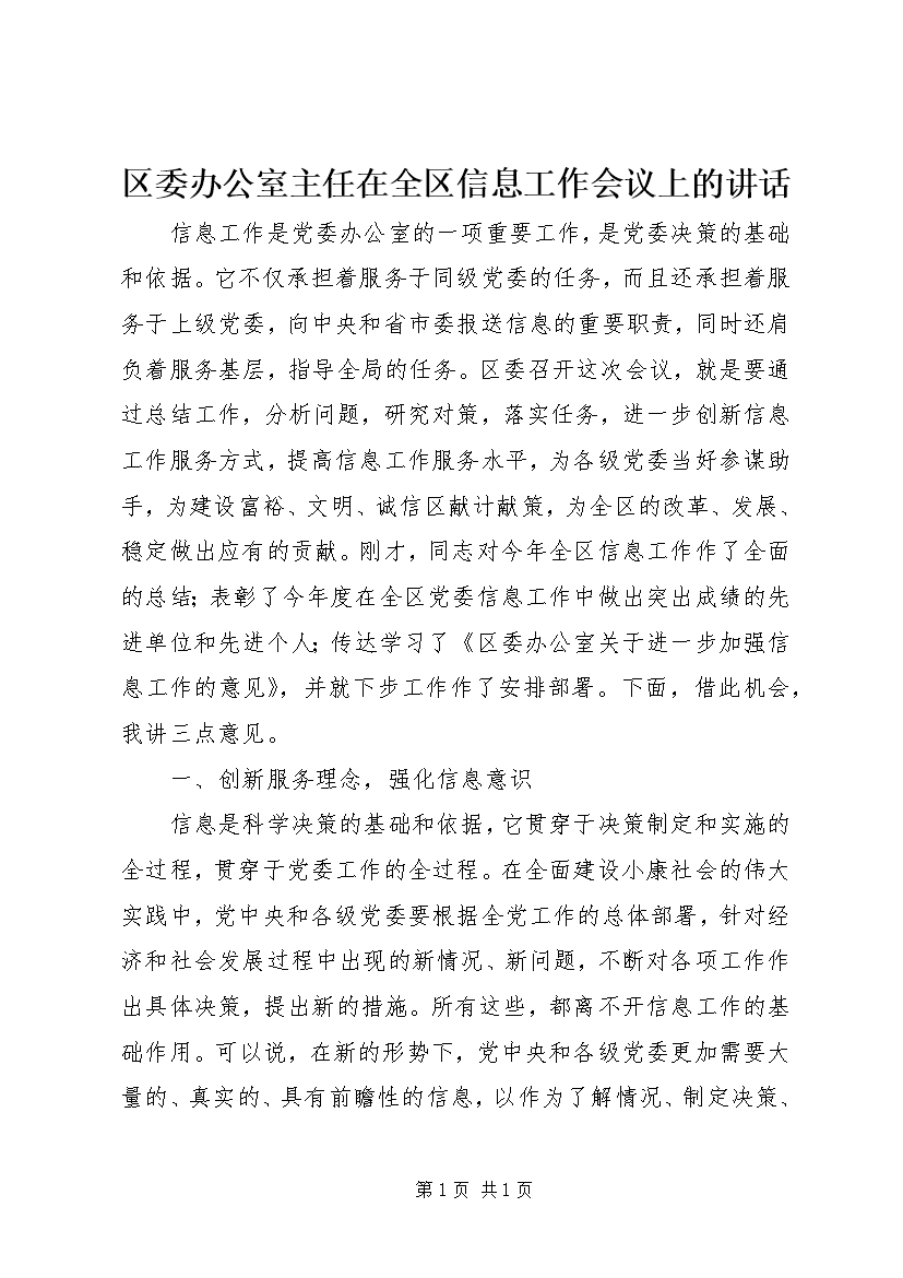 区委办公室主任在全区信息工作会议上的讲话 (4)