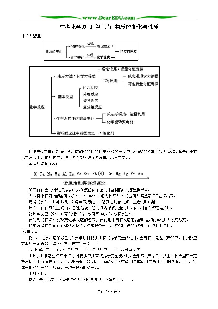 试题-全国-2007_中考化学复习 第三节 物质的变化与性质