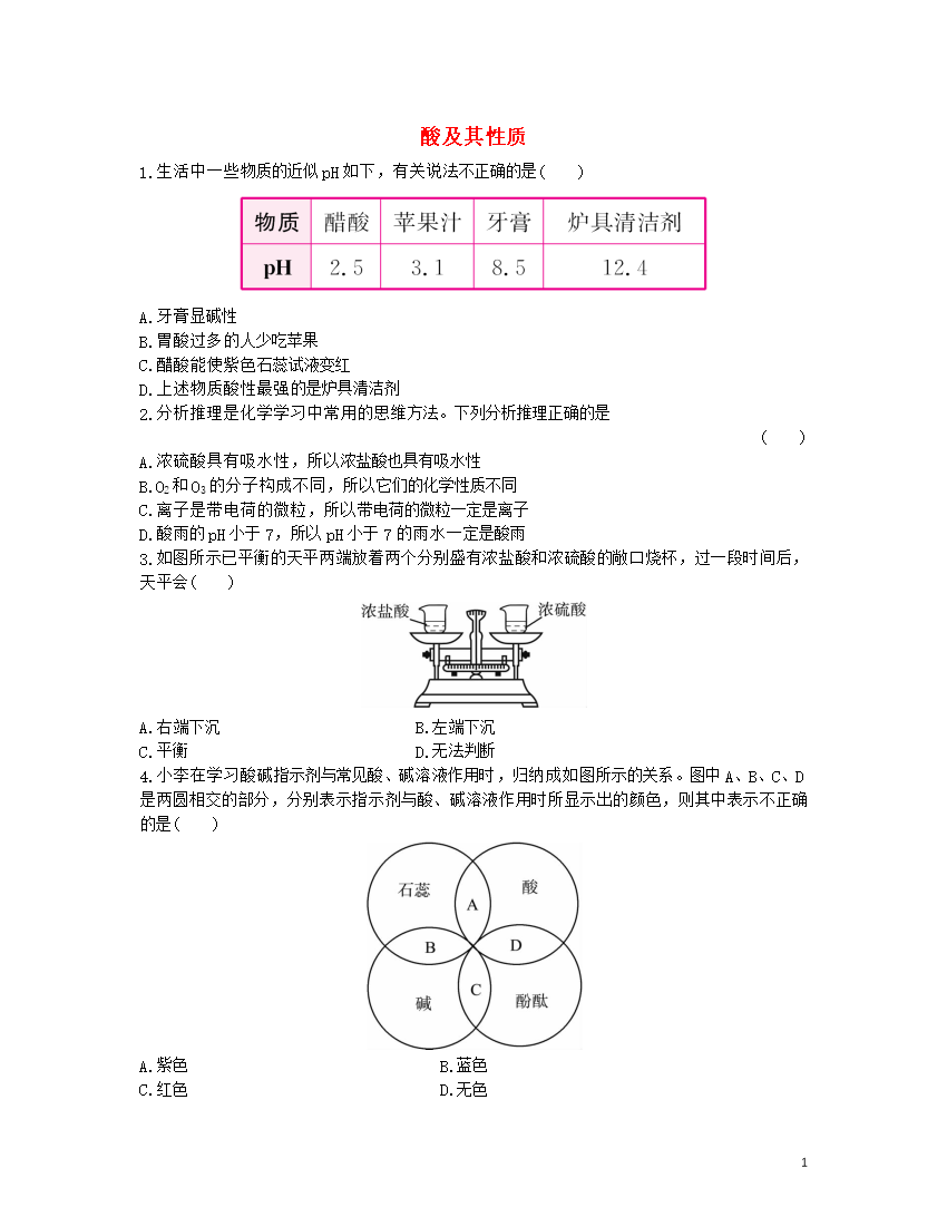 试题-全国-2016_学考传奇(济南专版)2016中考化学专题复习十一 酸及其性质拓展提升