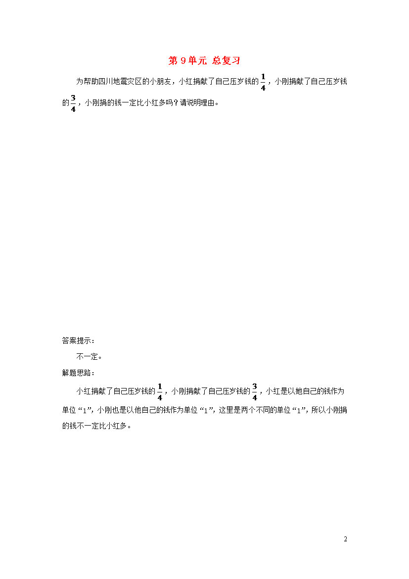 试题-全国-2019_五年级数学下册 9 总复习补充习题(1) 新人教版