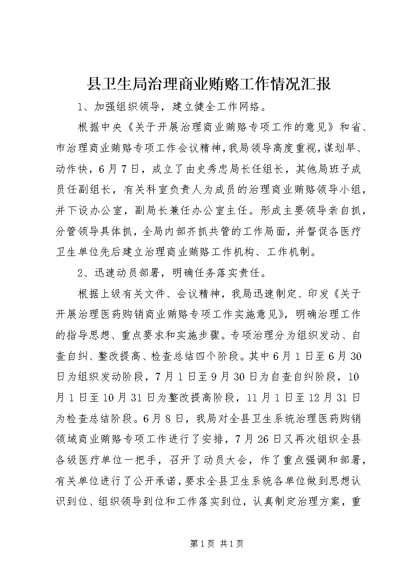 县卫生局治理商业贿赂工作情况汇报 (5)