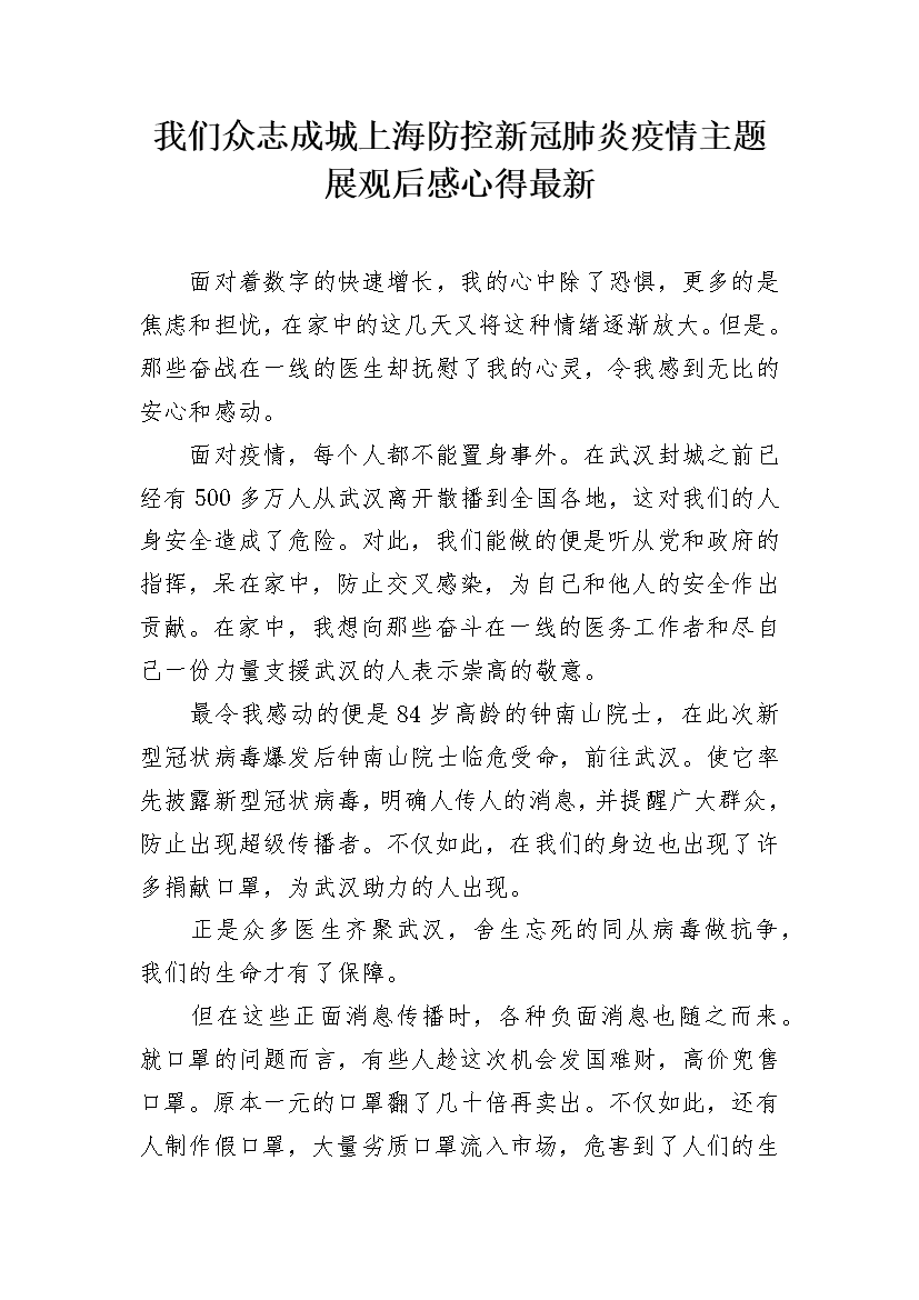 我们众志成城上海防控新冠肺炎疫情主题展观后感心得最新