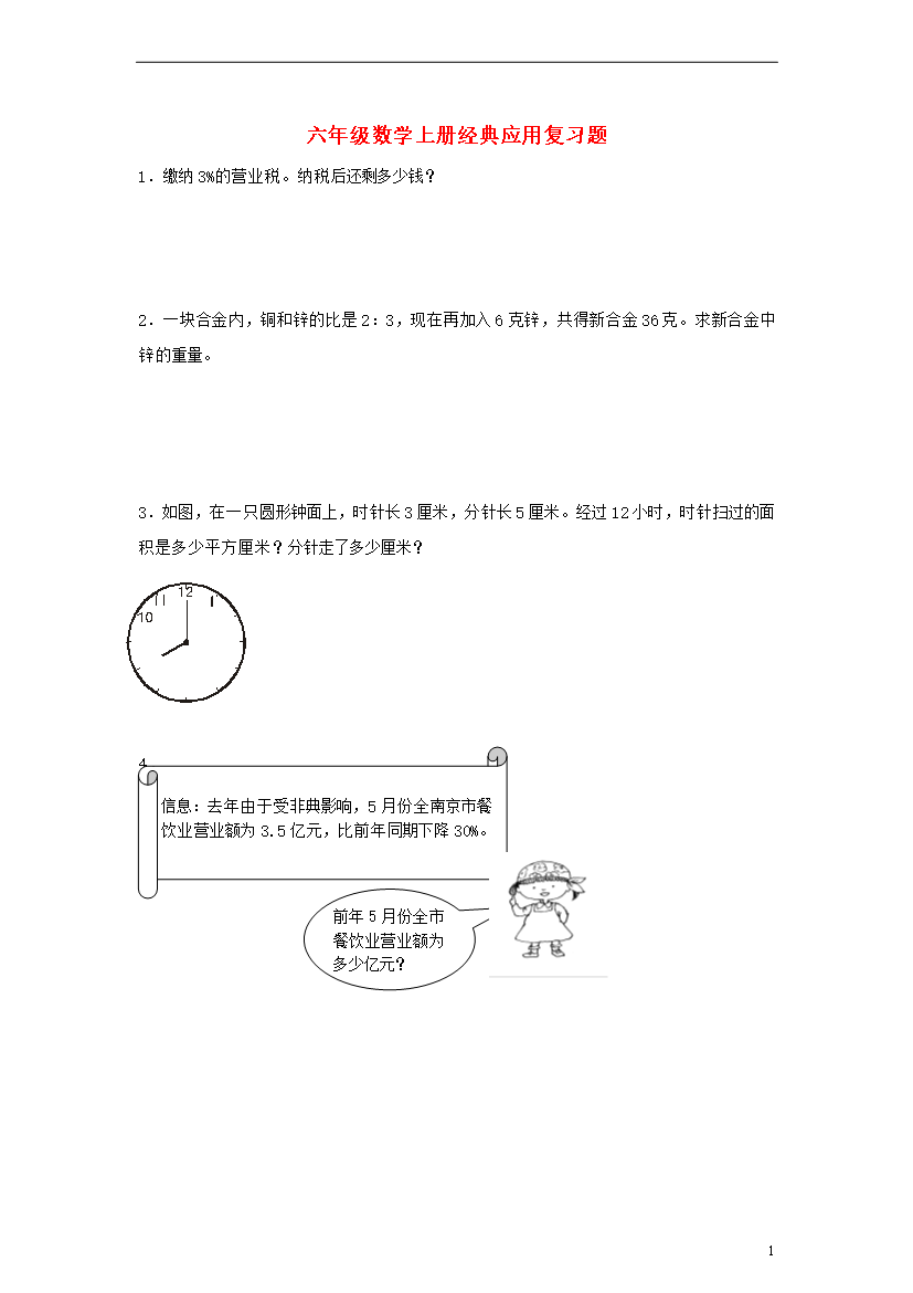 试题-全国-2013_2013学年六年级数学上册 经典应用复习题(无答案) 新人教版
