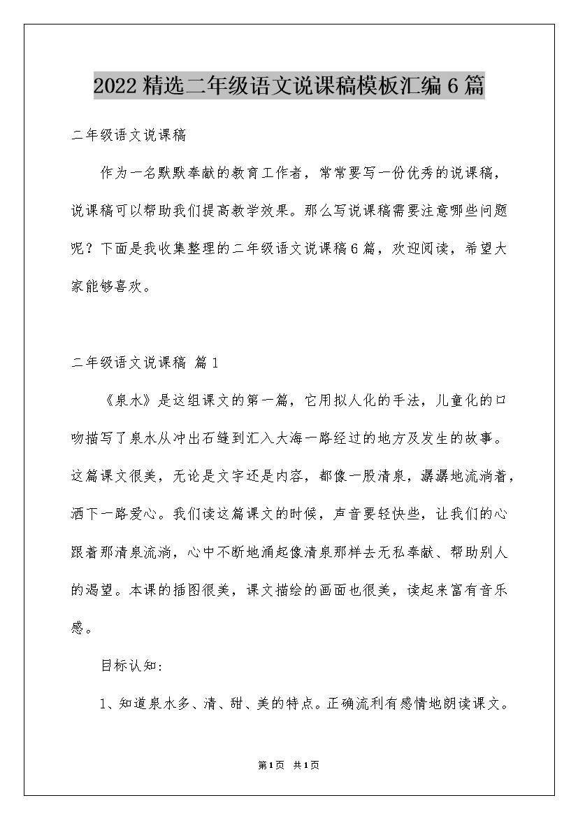 2022精选二年级语文说课稿模板汇编6篇