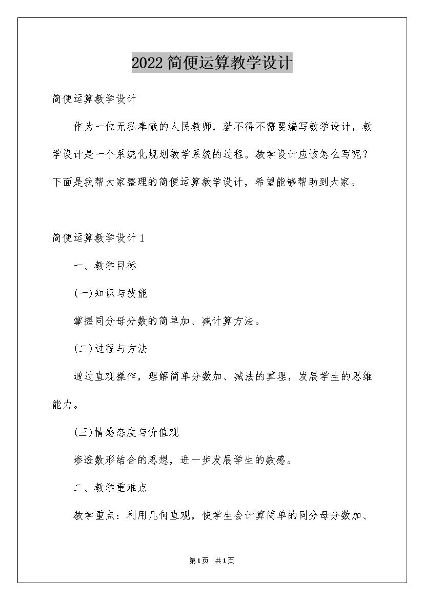 2022简便运算教学设计