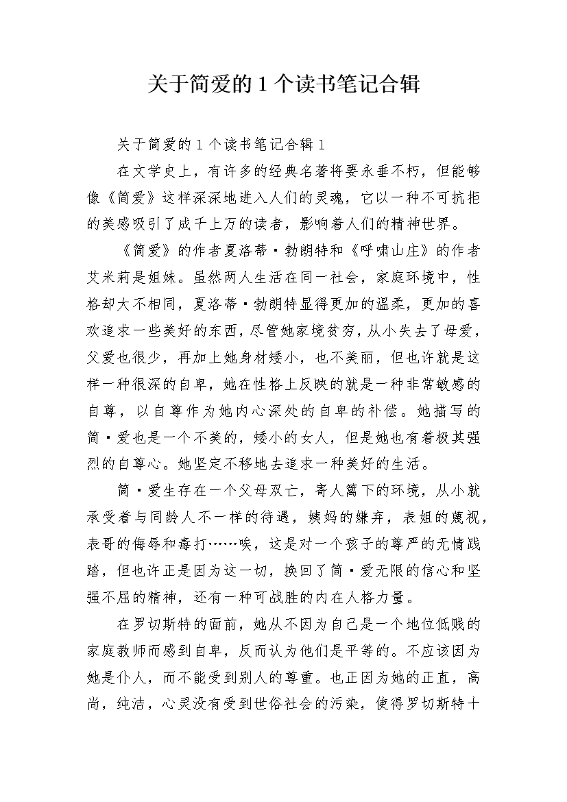 关于简爱的1个读书笔记合辑