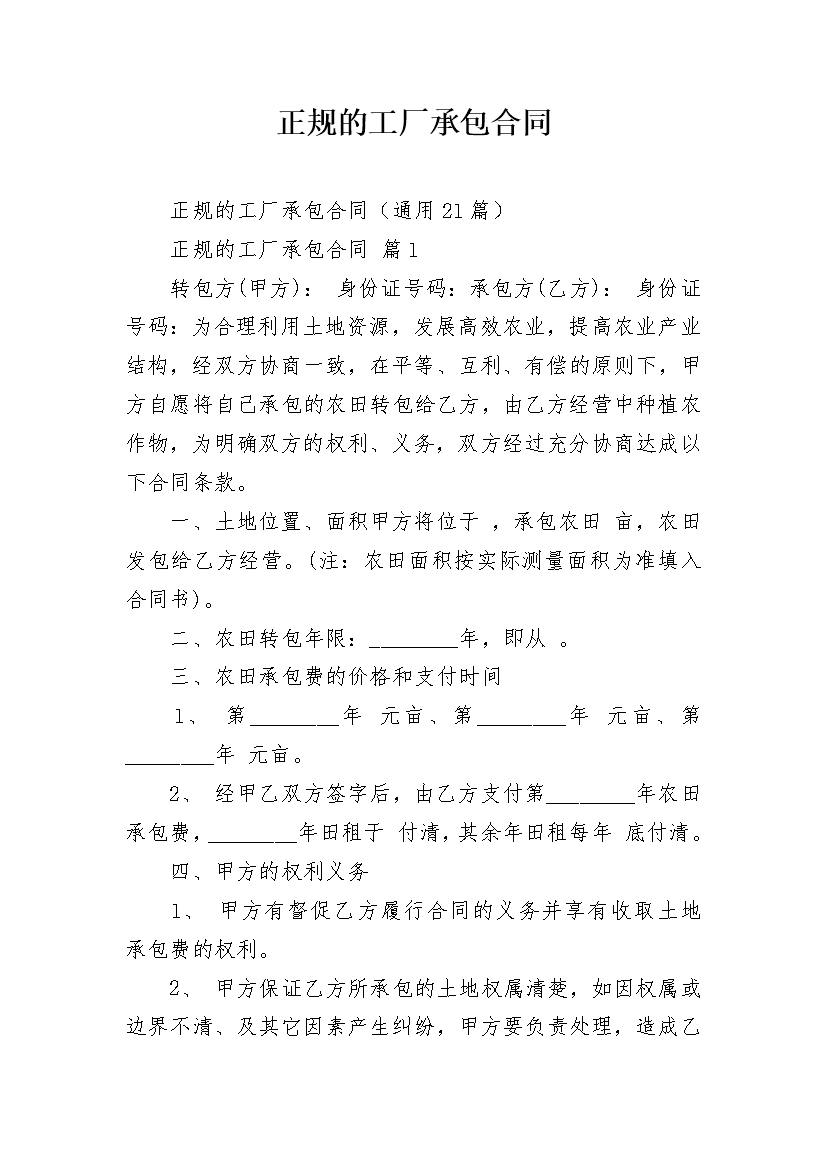 正规的工厂承包合同
