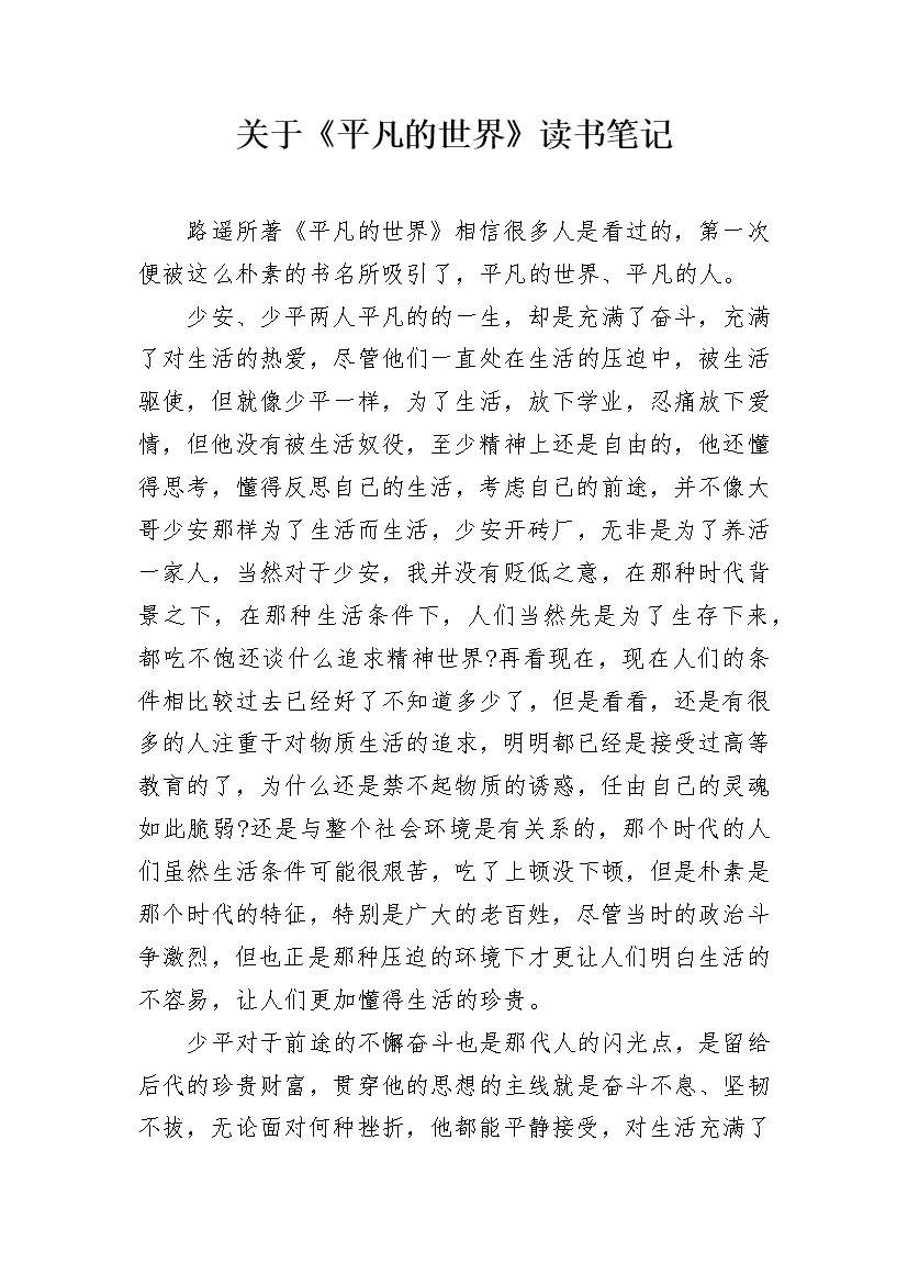 关于《平凡的世界》读书笔记