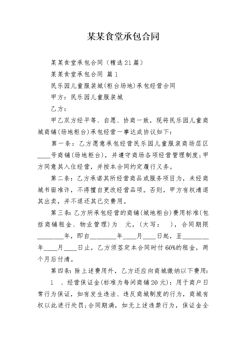 某某食堂承包合同