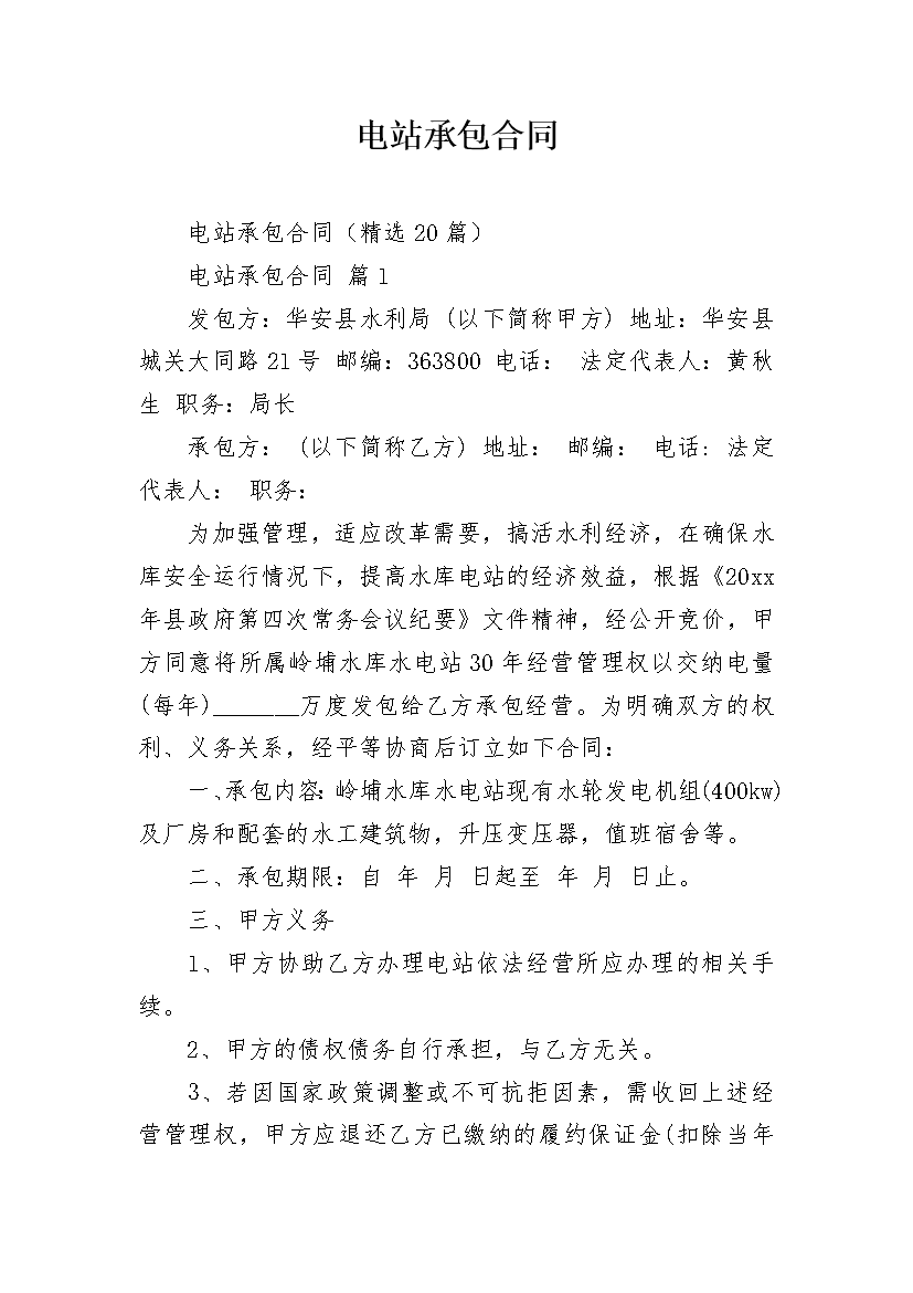 电站承包合同