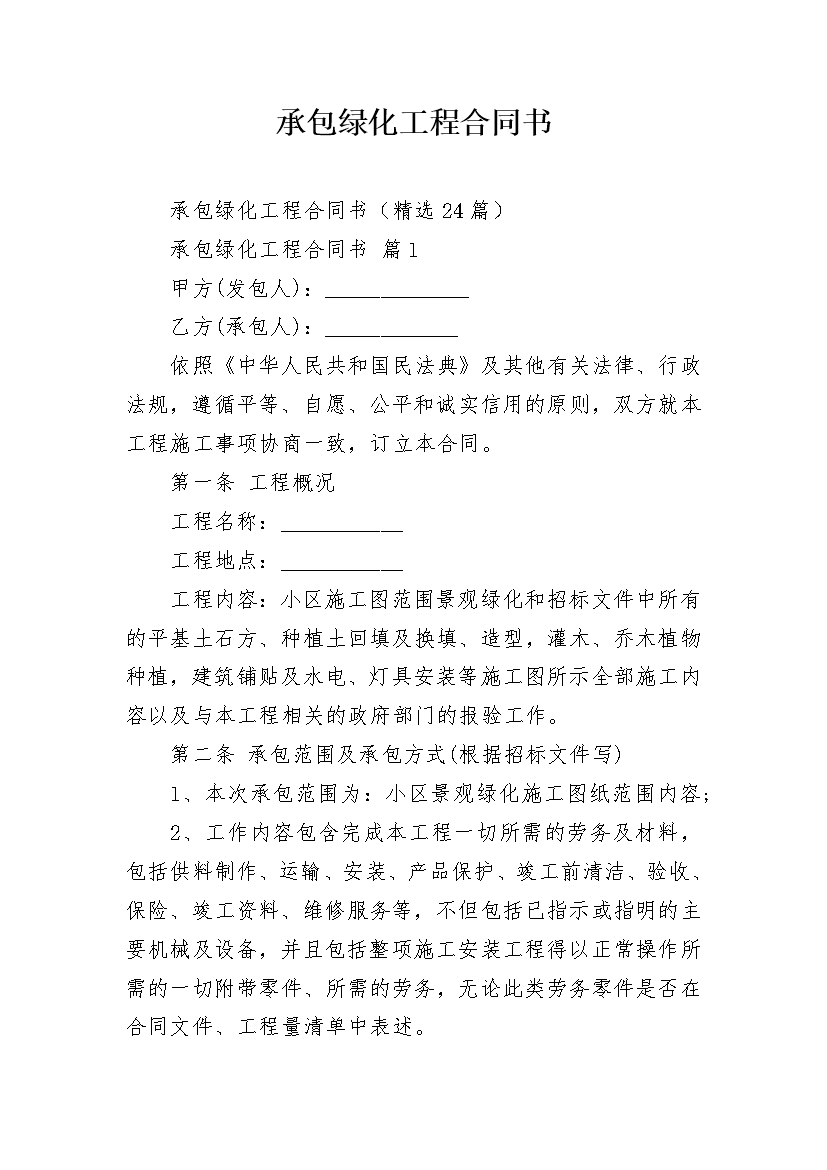 承包绿化工程合同书