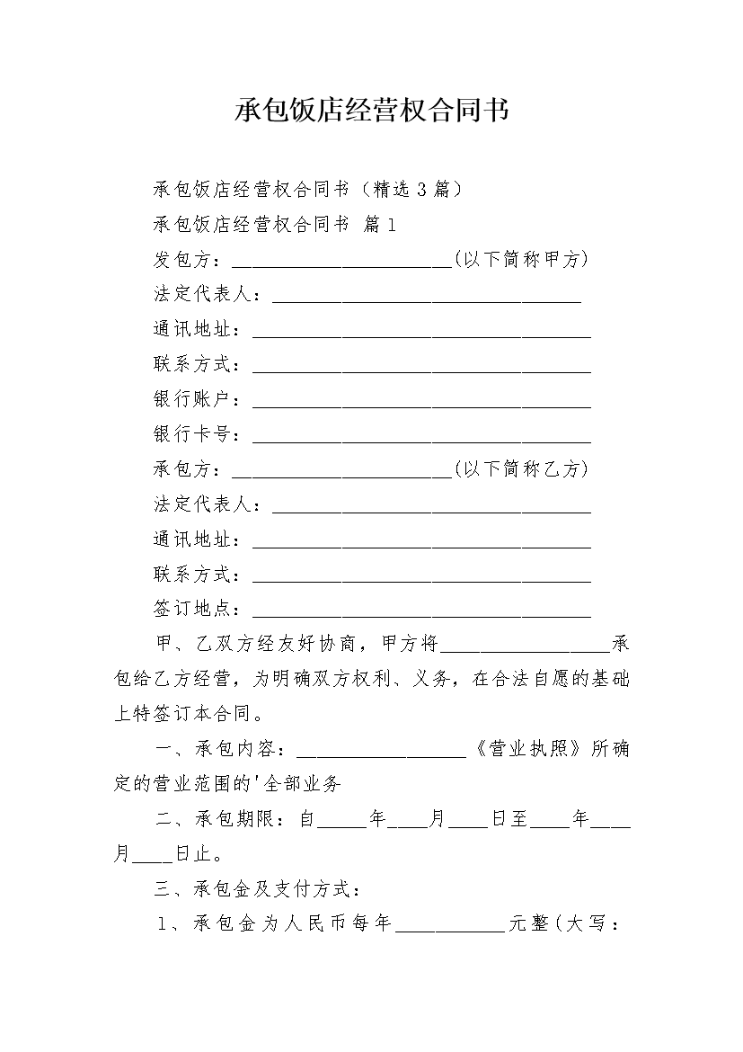 承包饭店经营权合同书