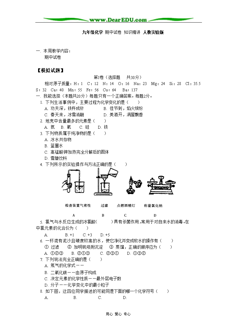 试题-全国-2007_九年级化学 期中试卷 人教实验版