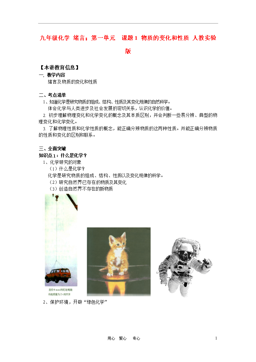 试题-全国-2010_九年级化学 绪言;第一单元 课题1 物质的变化和性质 人教实验版 知识精讲
