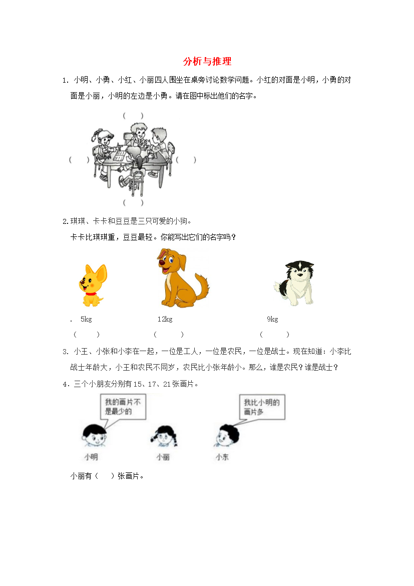试题-全国-2020_二年级数学下册 第十单元 数学百花园 分析与推理课时练 北京版