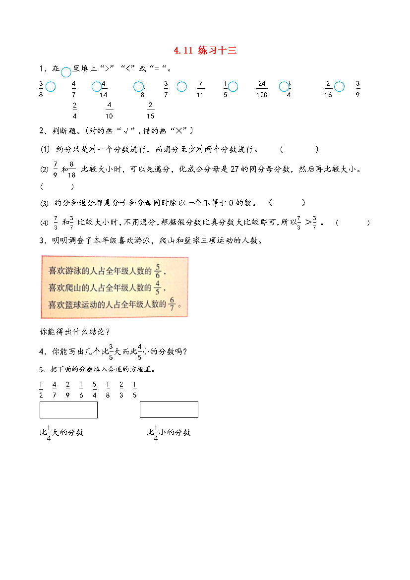 试题-全国-2020_五年级数学下册 第四单元 分数的意义和基本性质 4