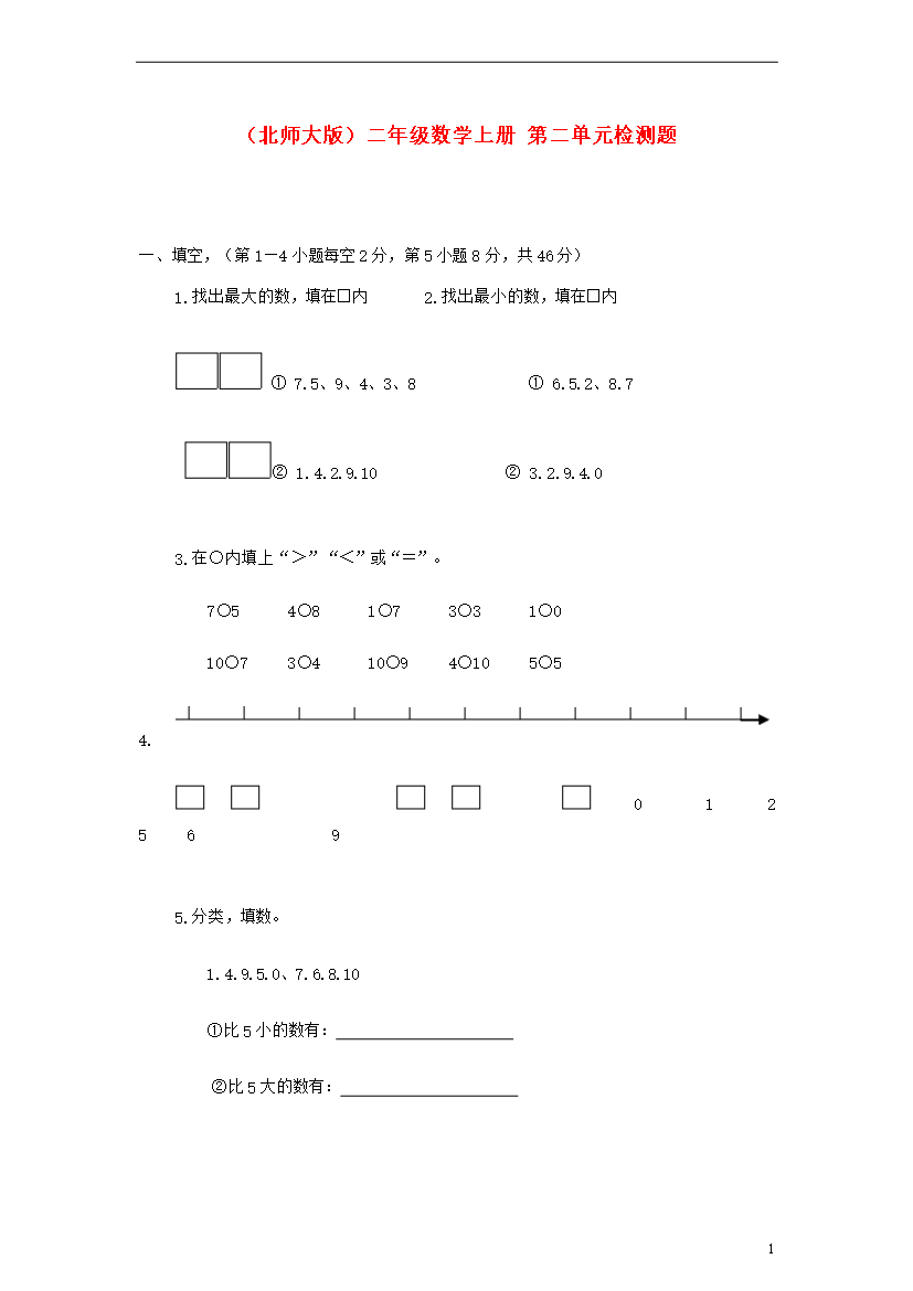 试题-全国-2013_二年级数学上册 第二单元检测题(无答案) 北师大版