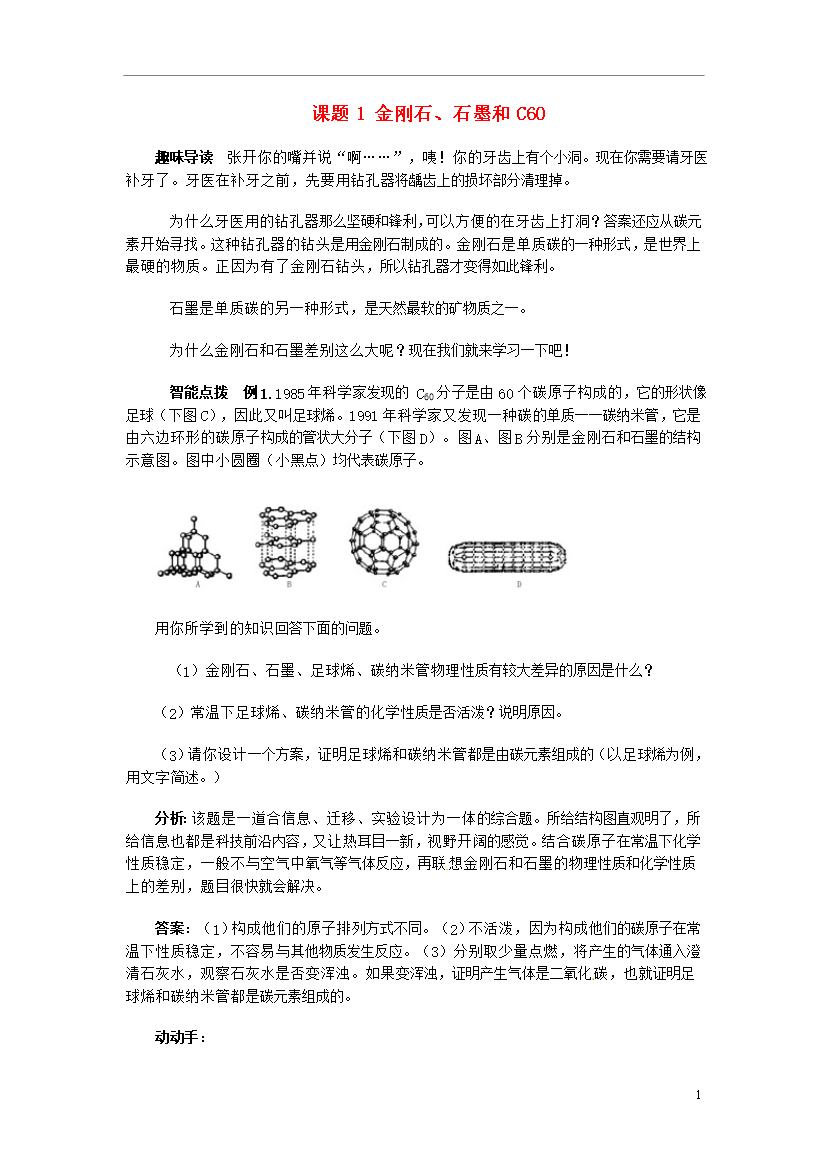 试题-全国-2013_九年级化学上册《第6单元 碳和碳的氧化物 课题1 金刚石、石墨和C60》检测题(含解析) 新人教版