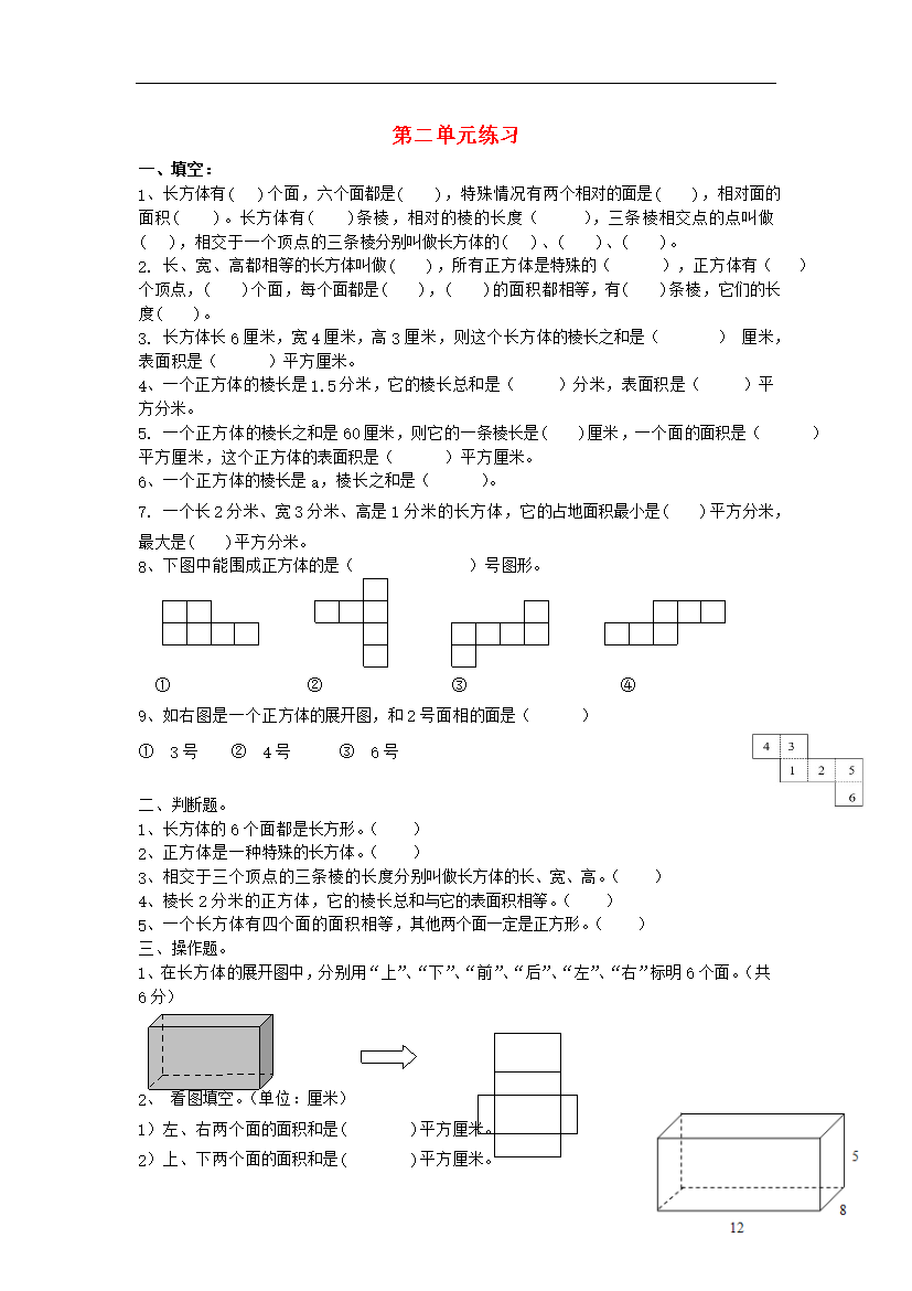试题-全国-2016_2016春五年级数学下册 第2单元 练习题(无答案) 北师大版
