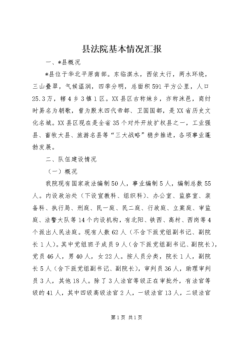 县法院基本情况汇报