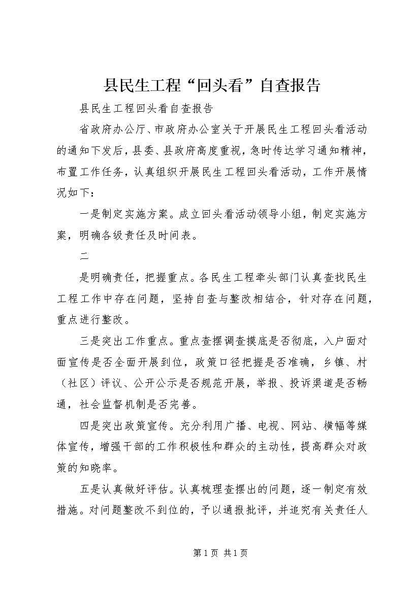 县民生工程“回头看”自查报告