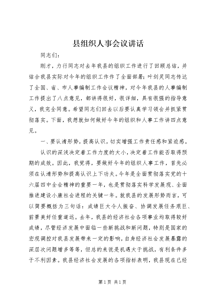 县组织人事会议讲话