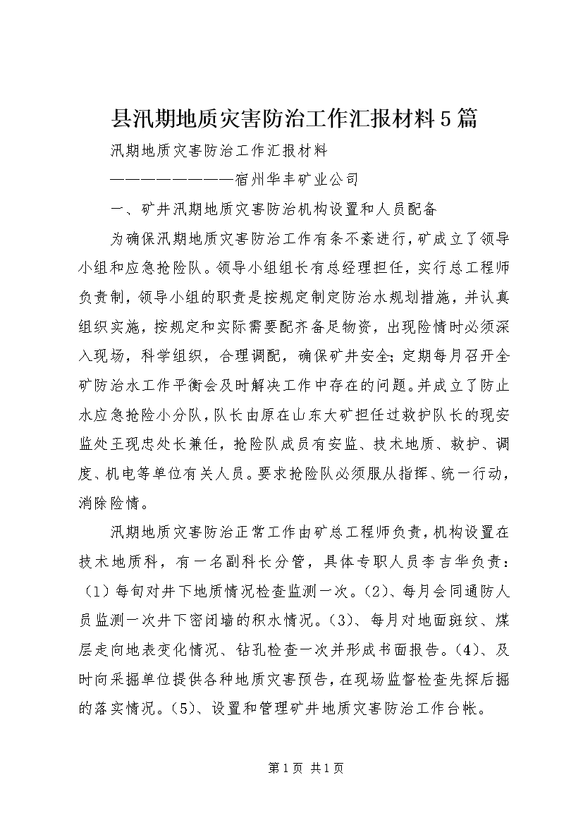 县汛期地质灾害防治工作汇报材料5篇 (2)