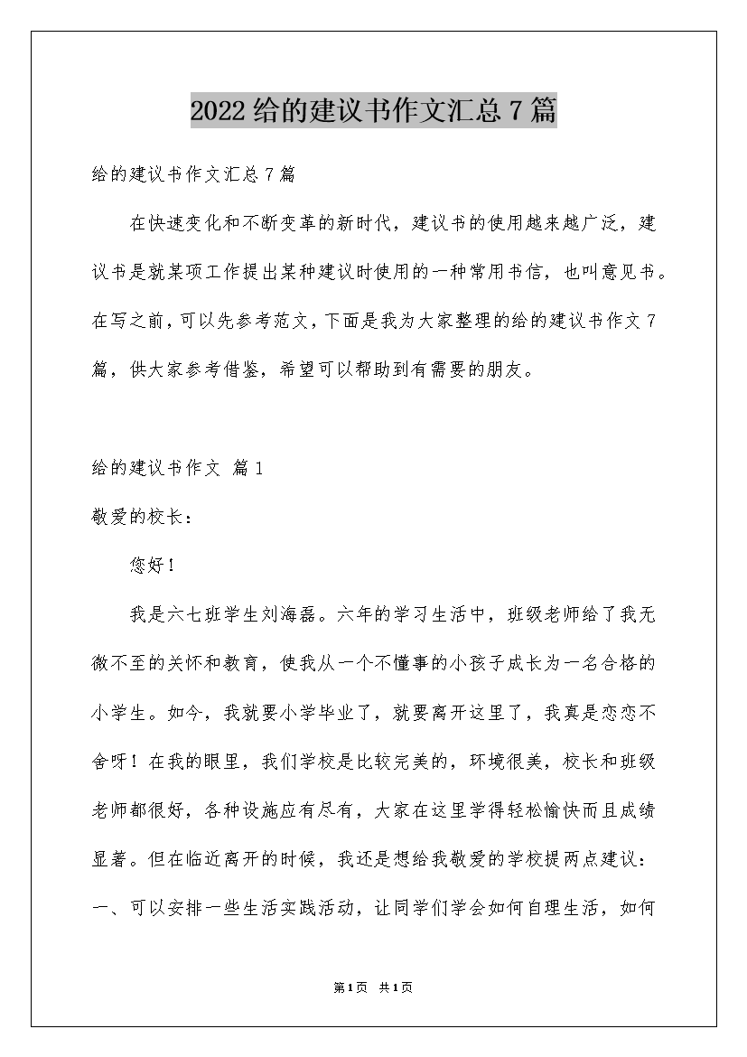 2022给的建议书作文汇总7篇