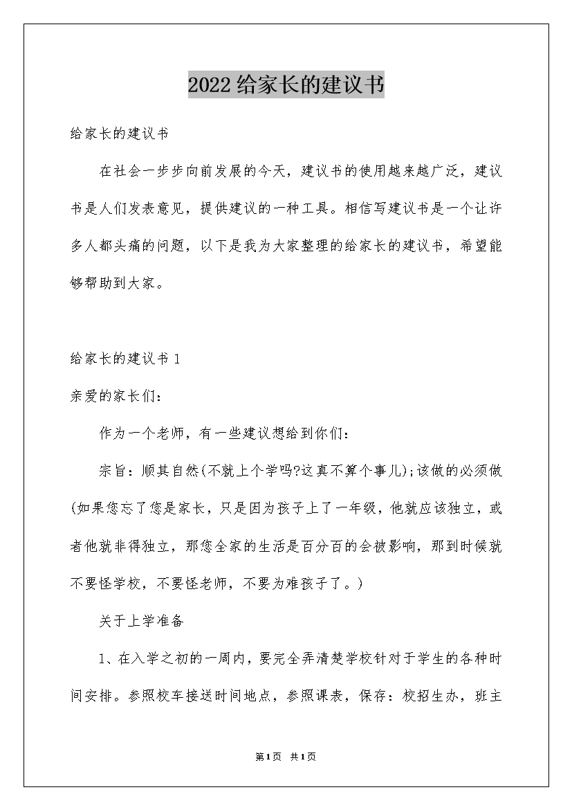 2022给家长的建议书
