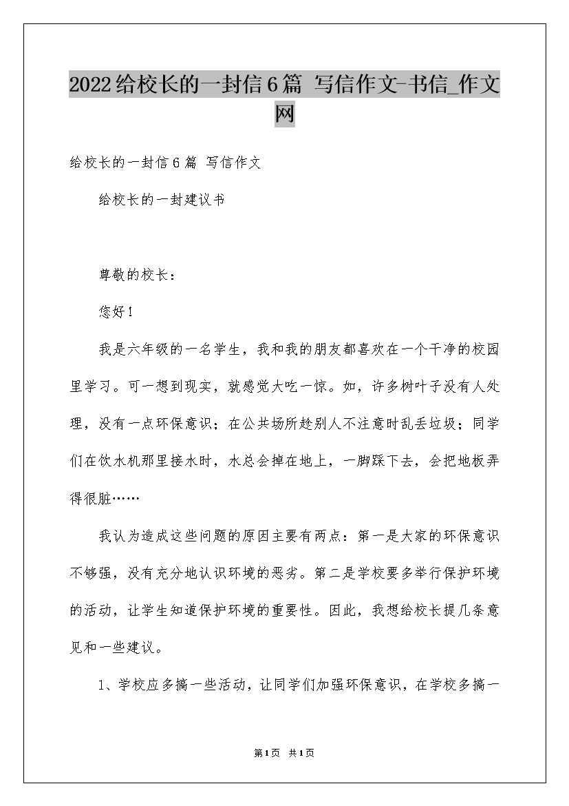 2022给校长的一封信6篇 写信作文-书信_作文网
