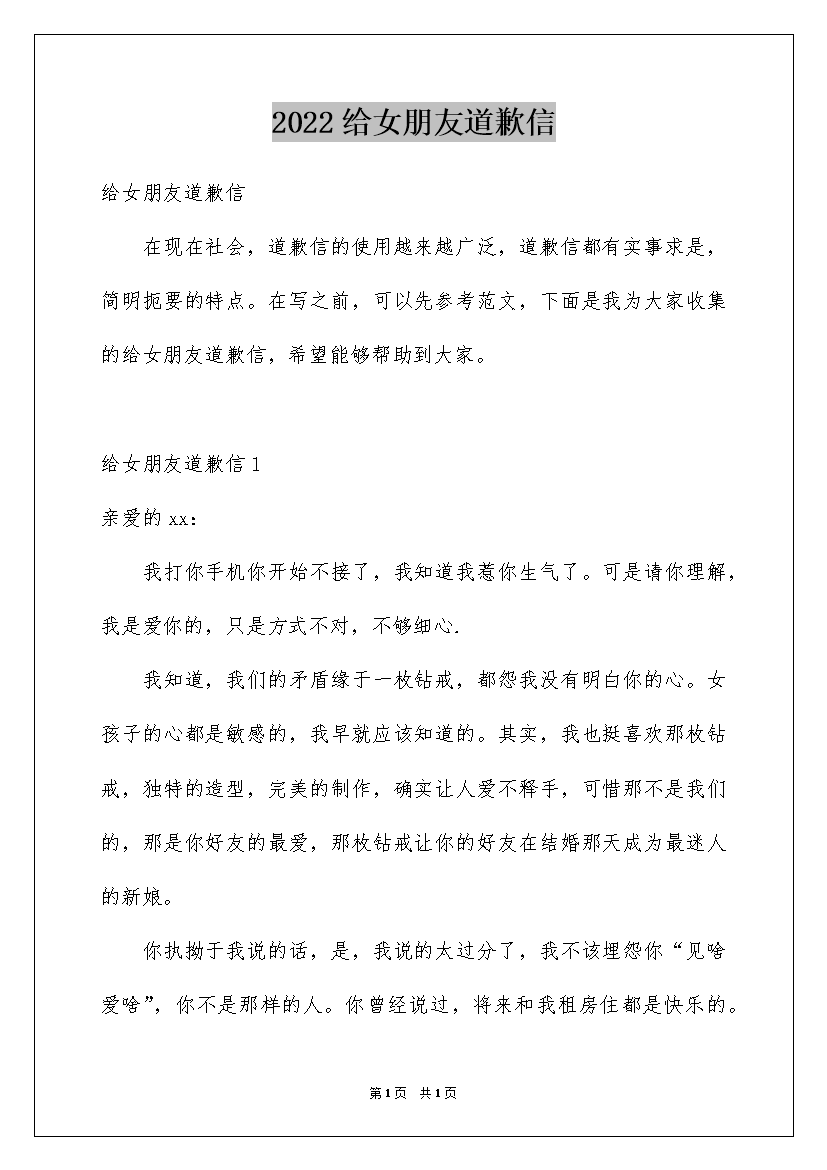 2022给女朋友道歉信