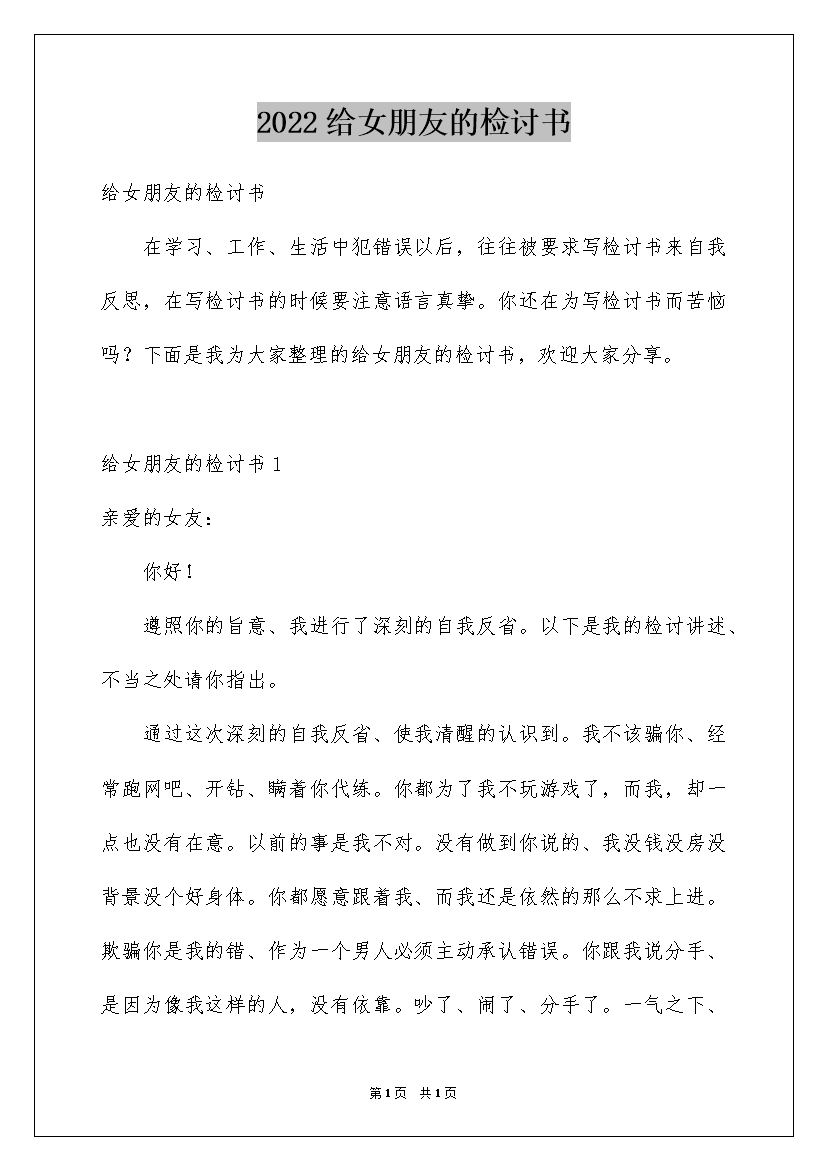 2022给女朋友的检讨书