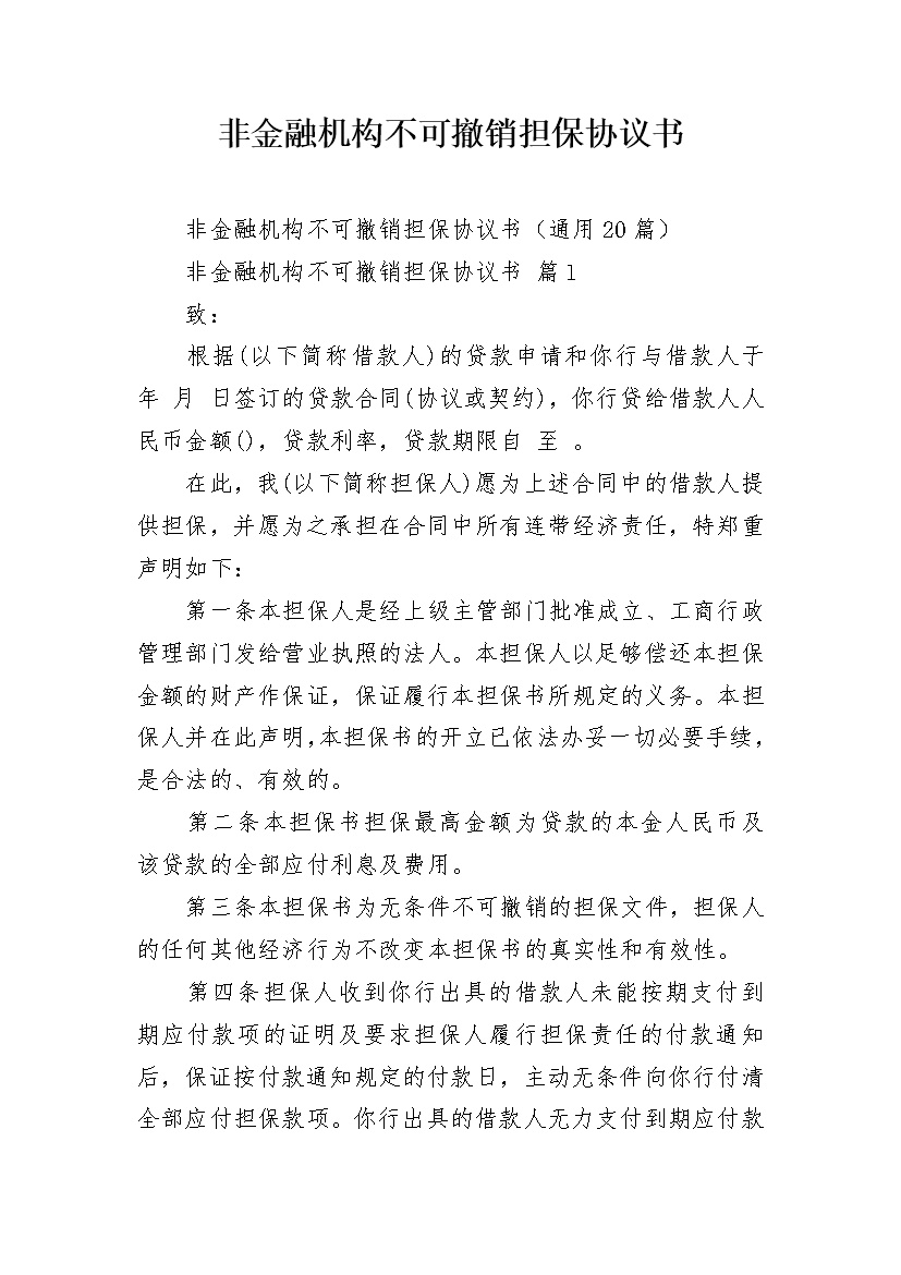 非金融机构不可撤销担保协议书