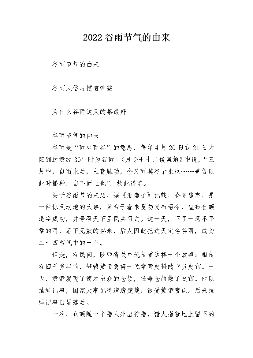 2022谷雨节气的由来